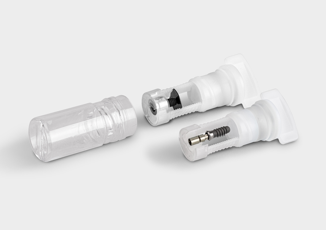 - safe and secure: Titanium inserts or a flexible clamping device protect the implants with or without implant mounts – at the same time, contact with the plastic is reliably prevented